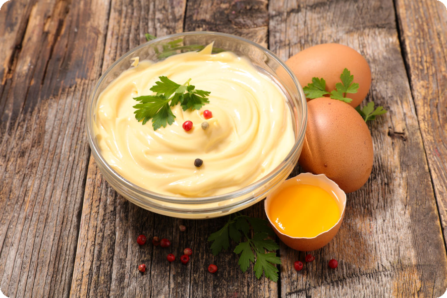 - 꼭 필요한 성분: 이 덕분에 마요네즈는 식감이 뛰어나고 부드럽게 만듭니다.